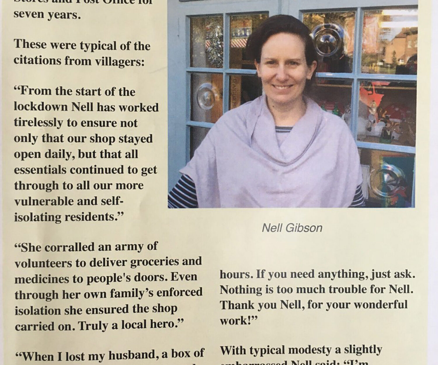 Shop news 12 Dec 2020 Local hero award Local hero award, article in The Bridge, October 2020 Nell Ravenscroft